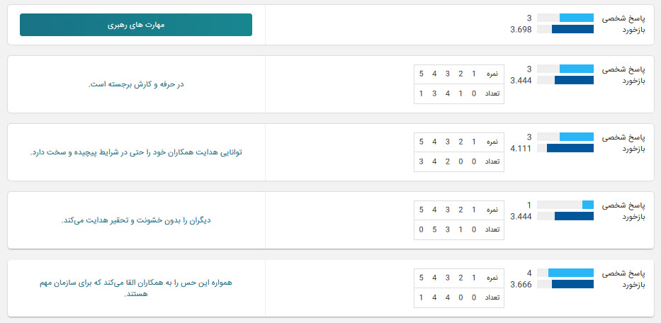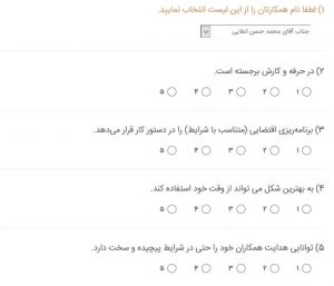 تا سوال آخر را پاسخ دهید و دکمه ثبت را بزنید و این کار را برای همه افراد گروه ارزیابی انجام دهید