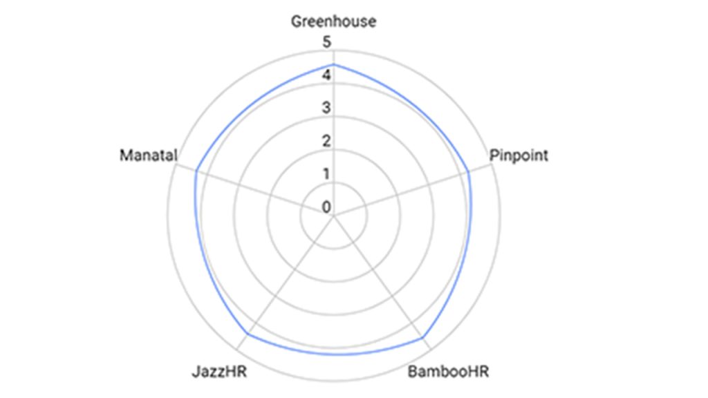 سیستمهای ATS خارجی اکثرا ویژگیهای اصلی یک سیستم ATS خوب را دارند، اما برخی از این ویژگیها برای ایرانیها به دلیل وجود یکسری مشکلات قابل استفاده نیستند. به هر صورت، داشتن اطلاعات جهانی دربارهی ATS خالی از لطف نیست و در ادامه تلاش کردیم برخی از نامآشناهای دنیای ATS را برای شما معرفی کنیم. در نمودار زیر میتوانید امتیاز میانگین این سیستمهای ATS را با توجه به نظرات در سایتهای G2 و Capterra، ببینید؛ طبیعتا میتوانید متوجه شوید که تلاش کردیم بهترینها را براتان گلچین کنیم. (امتیازها بین 0 تا 5 است).