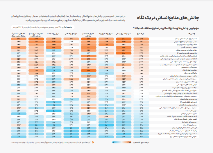در بخش اول گزارشی که سازمان همراه اول تحت عنوان “زیست بوم منابع انسانی ایران” منتشر کرده است، این موضوع بیان می‌شود که زیست بوم منابع انسانی ایران برای رسیدن به جایگاهی شایسته، راهی پر چالش در پیش دارد. و با وجود تلاش‌های ارزشمندی که تا به امروز صورت گرفته، همچنان شناخت درستی از جایگاه منابع انسانی و نقش حیاتی آن در کسب‌وکارها رخ نداده است. و در ادامه به چالش‌های موجود مدیریت منابع انسانی در صنایع مختلف ایران پرداخته، که ما قصد داریم به قابل توجه‌ترین بخش این گزارش، یعنی به 9 مورد از چالش‌های مشترک در اکثر صنایع بپردازیم. که 192 مدیر و مشاور منابع انسانی بر اساس مصاحبه‌های انجام شده با جامعه کارکنانی بیش از 276 هزار نفر در جمع‌آوری این داده یاری رسانده‌اند. و قابل ذکر است که در این گزارش جدا از مدیران و مشاوران، از کارکنان نیز نظرسنجی شده است.