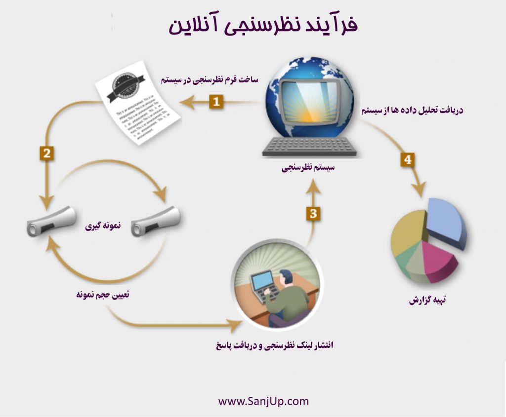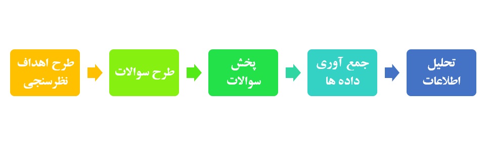 این فرآیند شامل پنج مرحله مجزا می باشد. شکل زیر فرآیند طراحی و پیاده سازی یک نظرسنجی را نشان می دهد: